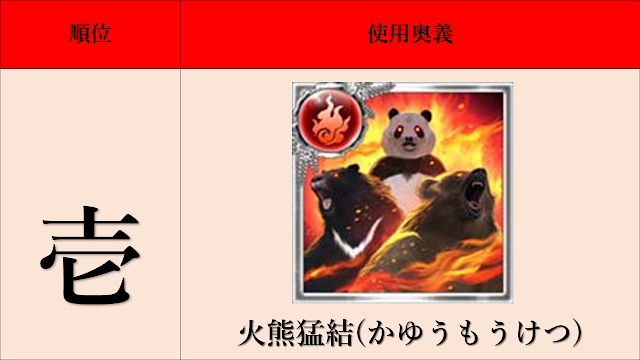 続きまして人気奥義ランキングです!3月の全合戦の中で使用頻度の高かった奥義をまとめました!