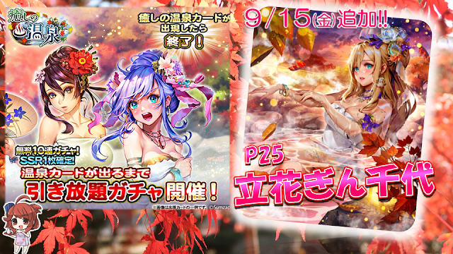 9/15(金)より開催される癒しの温泉ガチャでは、新SSR25を含む新カードが登場します。